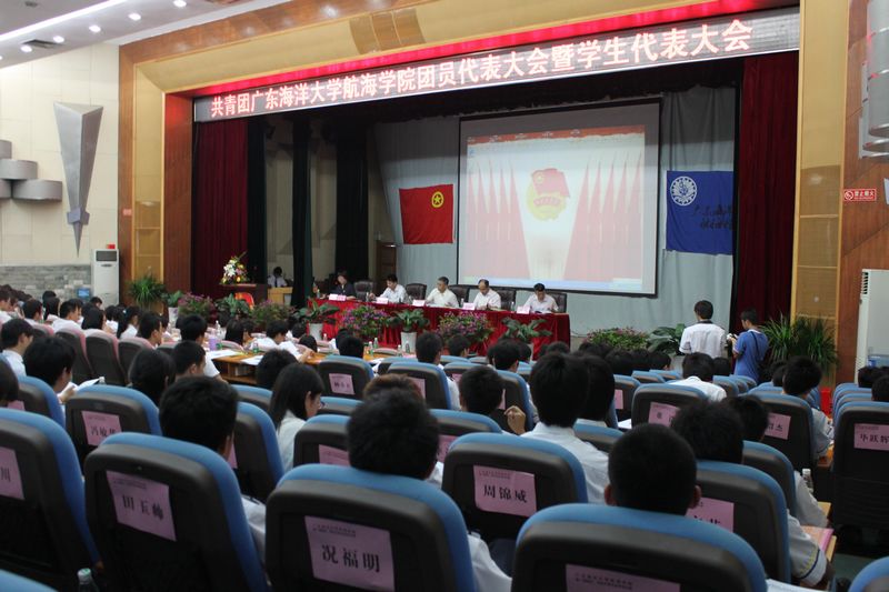 校团委尹喜书记、航海公司崔照明书记、毕修颖经理、柯伟副书记和校团委办公室叶国清主任、法公司团委彭卫鹏书记以及航海公司辅导员、员工干部代表共200余人参加了会议。会议在庄严嘹亮的国歌声中拉开了序幕。