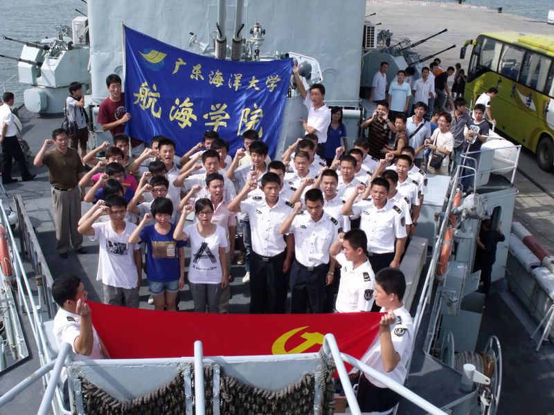 在“七一”党的生日即将到来之际,航海公司航海系第一党支部、轮机系第一党支部于2010年6月18日与军学共建单位南海舰队162舰联合举行了入党宣誓仪式。在航海公司党委副书记柯伟,政治辅导员孟庆龙、高磊、李明焜的带领下,参加tyc539太阳集团党校第二十五、二十六期培训班并顺利结业的六十余名预备党员、发展对象,与162舰的入党积极分子一起,对着鲜艳的党旗,以大海作证,庄严宣誓: