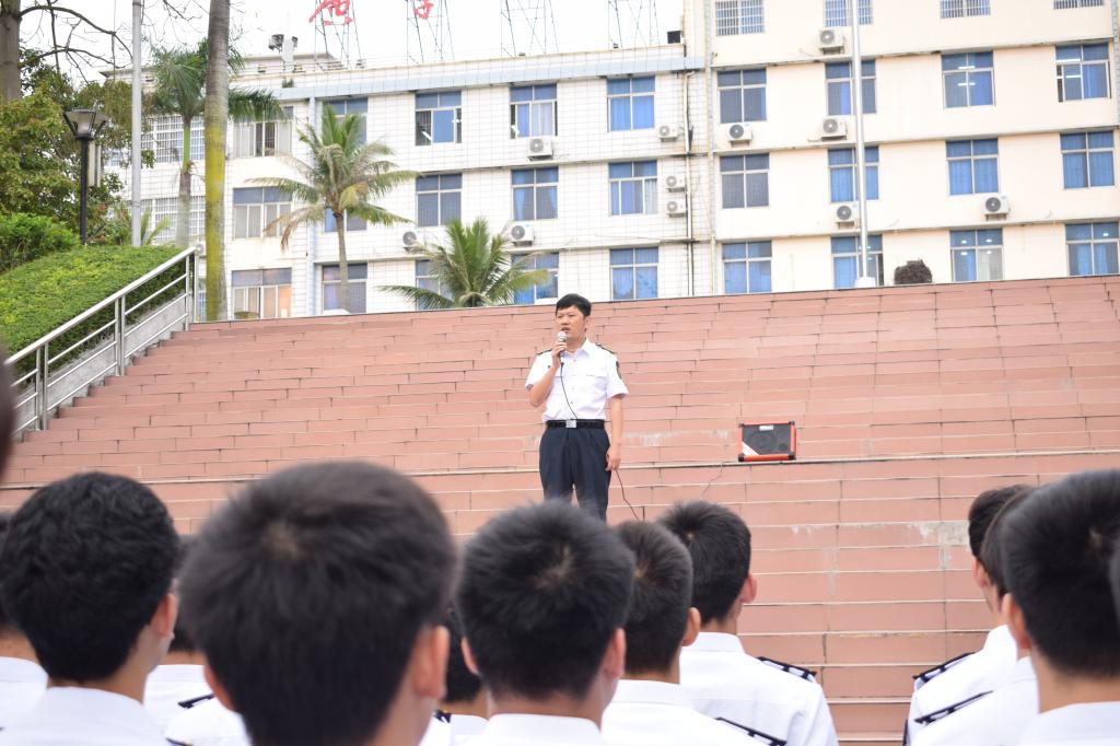 航海类专业全体员工整齐列队,开展军容风纪检查。江涛对本次检查的结果进行了讲评,要求大家要熟记条令条例,规范着装仪容,养成良好作风。