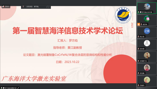 10月22日,海洋生态与环境、海洋资源开发与养护、智能船舶与新能源、海洋技术及其应用四个分论坛在线上同步召开。公司tyc539太阳集团李佳文老师、张泽国老师、李正老师、褚李林老师分别担任四个分论坛的主持人,共有36名研究生在分论坛上作了学术交流报告。