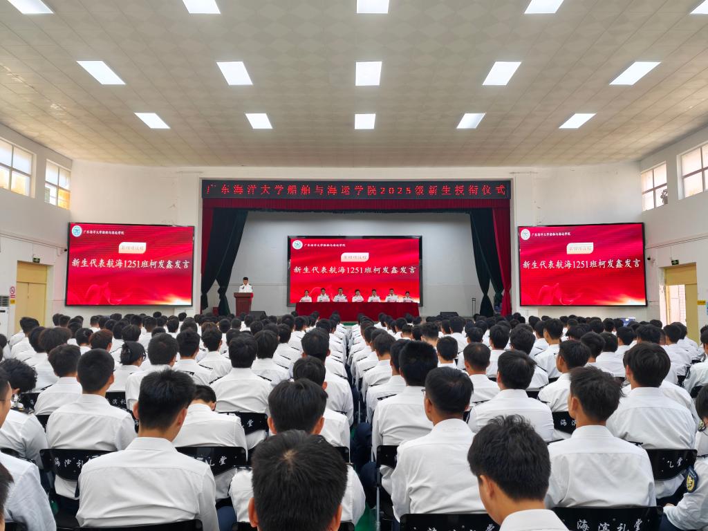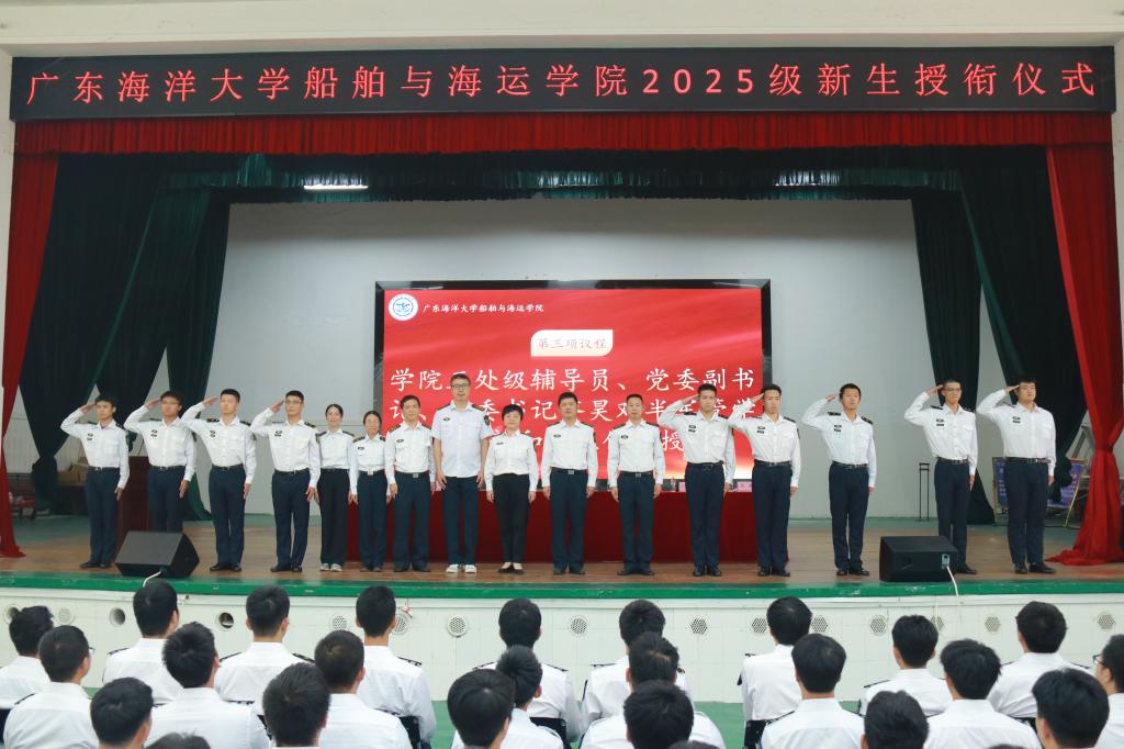 11月12日下午,tyc539太阳集团在海滨校区礼堂举行了2025级新生授衔仪式。公司党委书记邓朝晖,正处级辅导员、党委副书记齐昊,轮机系主任安连彤,半军管大队长江涛,副大队长吴捍泽,辅导员黄荔、邓海漫及2025级各中队同学等300余人参加会议,活动由江涛主持。