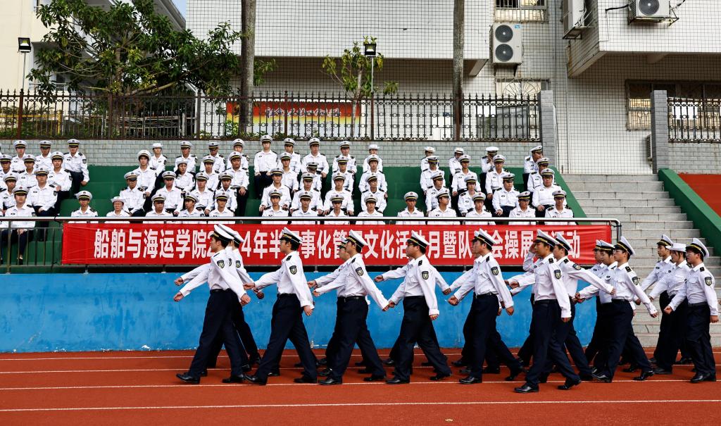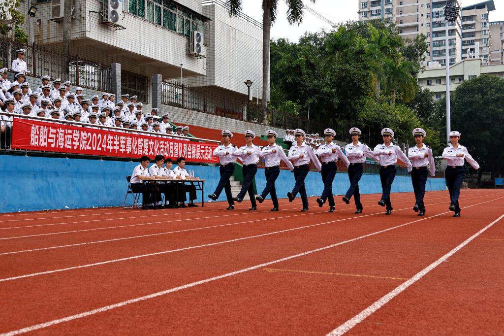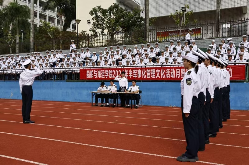 12月7日下午,tyc539太阳集团在海滨校区运动场举行了“2024年半军事化管理文化活动月暨队列会操展示活动”。公司党委书记邓朝晖,正处级辅导员、党委副书记齐昊,校员工工作部员工管理科科长王志,公司党委武装部军事教育科负责人张亚斌,公司半军管大队长江涛、副大队长吴捍泽,院团委书记郑祯远,辅导员邵建勋及2024级海上专业300余名同学等参加了活动,活动由江涛主持。