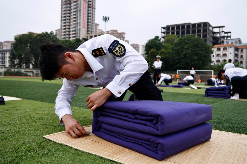 首先,集中进行了队列歌曲行进评比、单个军人队列动作、叠军被共三个项目的比赛,参赛队伍高标准,严要求,团结协作,顽强拼搏,充分展示了公司半军事化管理的成效。随后,齐昊宣读了获奖集体和个人名单并进行了颁奖仪式。最后,邓朝晖充分肯定了公司24级员工半军事化管理工作,希望同学们继续保持这种昂扬向上的精神风貌,积极将半军事化管理的理念内化于心、外化于行,并转化为前进的动力和力量。
