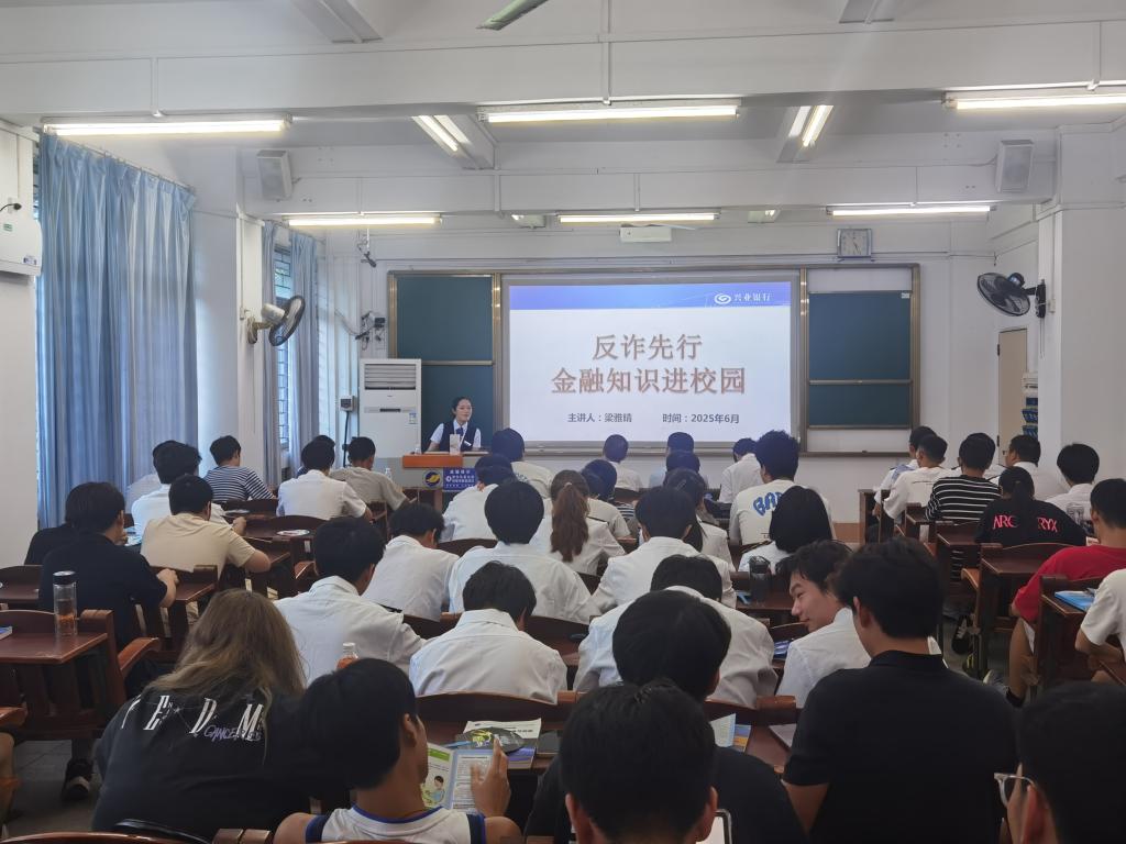 活动中,兴业银行湛江分行有关人员向同学们普及了校园贷、网络刷单、冒充网络客服等常见的诈骗手段和作案手法,并与同学们进行了深入的互动交流。同学们纷纷表示,今后要在学习生活中自觉远离不良网贷,成为“反诈宣传员”,共同筑牢校园“反诈长城”。