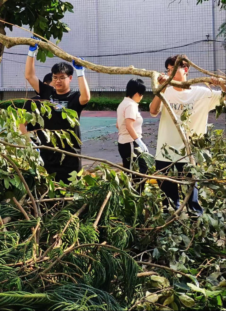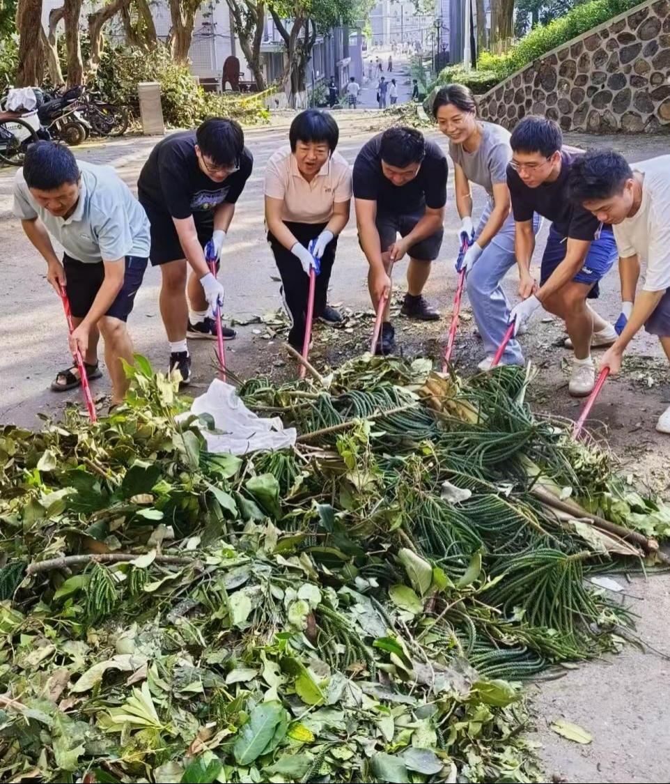 在劳动现场,师生们以高度的责任感和饱满的热情,对实验楼、教学楼、经海楼及员工生活区等重点区域进行了彻底的清理和整治。师生干部挥汗如雨,默契协作,高效地完成了预定区域的清扫任务,使校园环境在短时间内得到了有效恢复。同学们纷纷表示,这不仅是一次有效的灾后环境清理实践,更是一堂生动的劳动教育课和集体主义教育课。