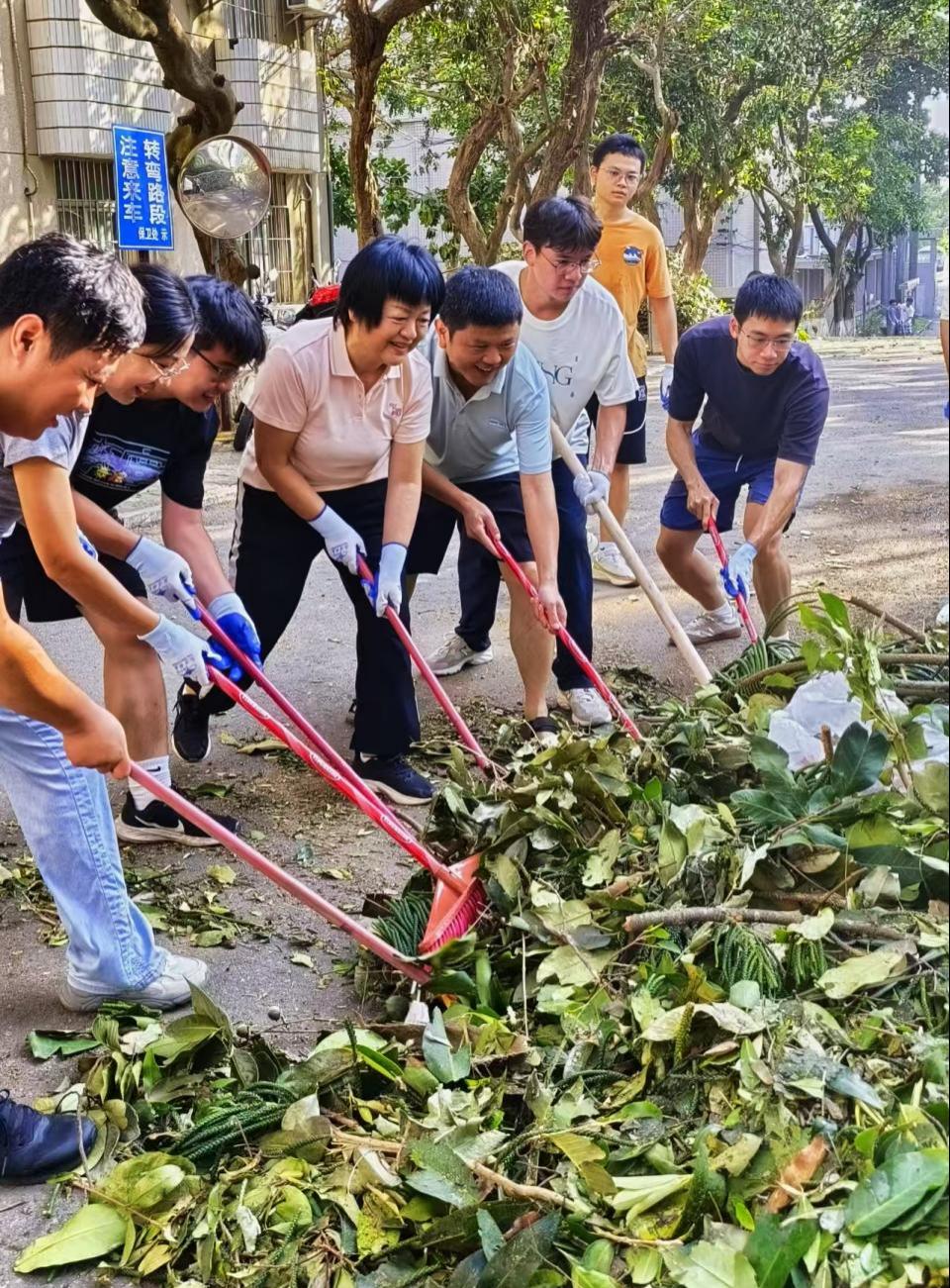 为尽快恢复台风过后的校园环境,保障师生教学科研活动正常进行,10月8日上午,tyc539太阳集团组织开展“救灾复学,净化校园”爱国卫生运动。公司党委书记邓朝晖,正处级辅导员、党委副书记齐昊,以及60余名师生党员、员工骨干一同参加了本次劳动。