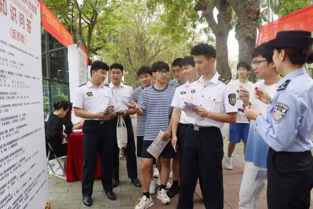 活动中,来自湛江经开区扫黑除恶办、平安办、普法办、反邪教部门、反诈中心、禁毒办、反恐办和处非办等部门的工作人员用通俗易懂的语言从扫黑除恶、平安建设、法治教育、反邪教宣传、防范电信网络诈骗、禁毒宣传、防范非法集资和反对恐怖主义等多方面多角度开展宣传教育。通过签到打卡,有奖知识问答、集印章打卡领礼品等丰富多彩的形式让员工在法治的乐园中遨游,在潜移默化中培养师生的法治意识,主动学习相关知识,宣传法治思维与方法。同学们纷纷表示要主动肩负起维护校园安全稳定的责任,拒绝不法侵害。