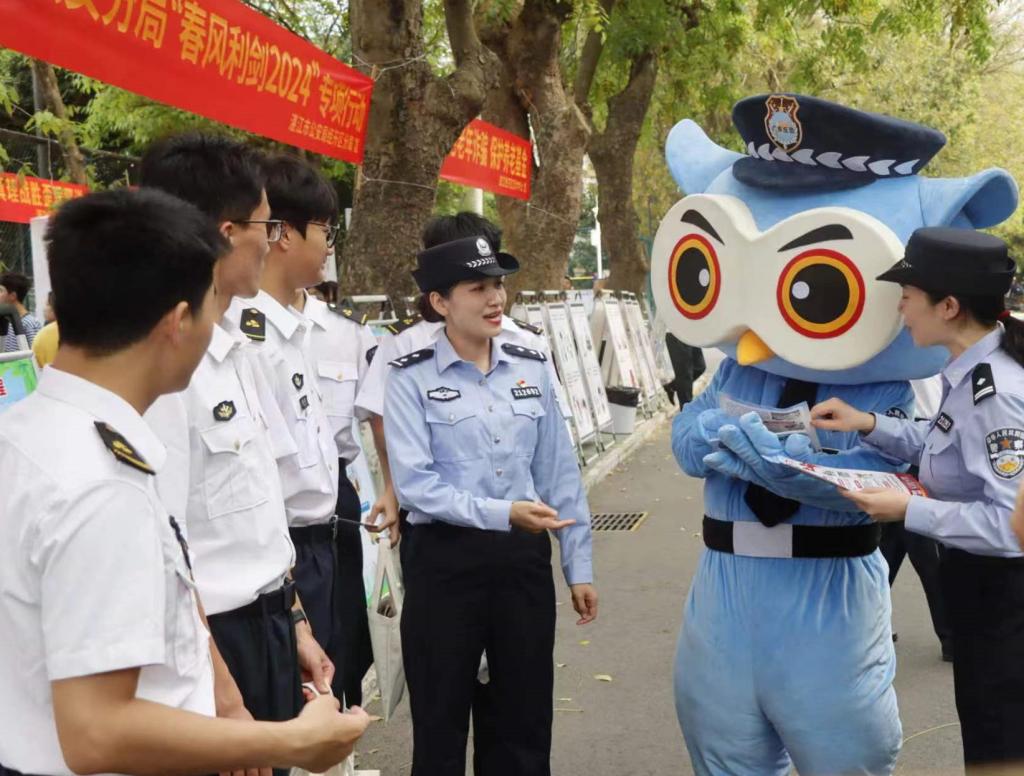 为迎接第九个全民国家安全教育日,全面提升员工的法治观念和安全意识,营造海滨校区良好的法治氛围。4月12日下午,湛江市经开区政法委联合经开区多部门在海滨校区开展“维护校园安全,拒绝不法侵害”主题普法宣传教育活动。湛江经开区政法委专职副书记洪国兴、赵秋林,扫黑办副主任许小燕,集团保卫部副部长徐法军,tyc539太阳集团正处级辅导员、党委副书记齐昊,海滨校区保卫科科长乔明海,船海公司半军管副大队长刘抒睿、江涛,辅导员陈方园等出席活动。