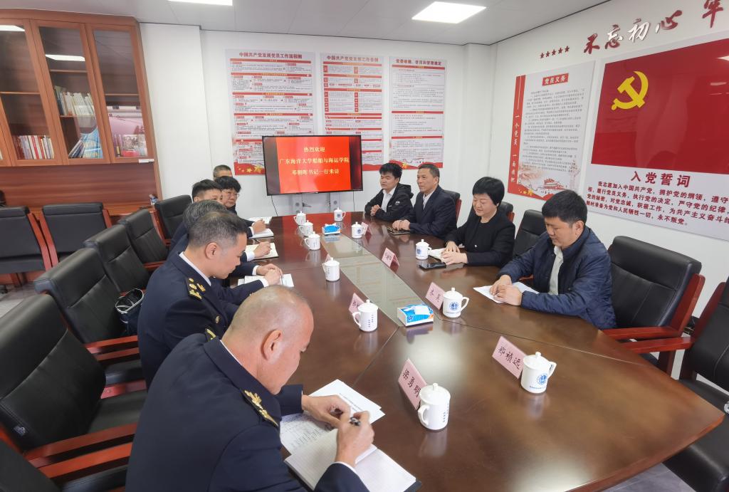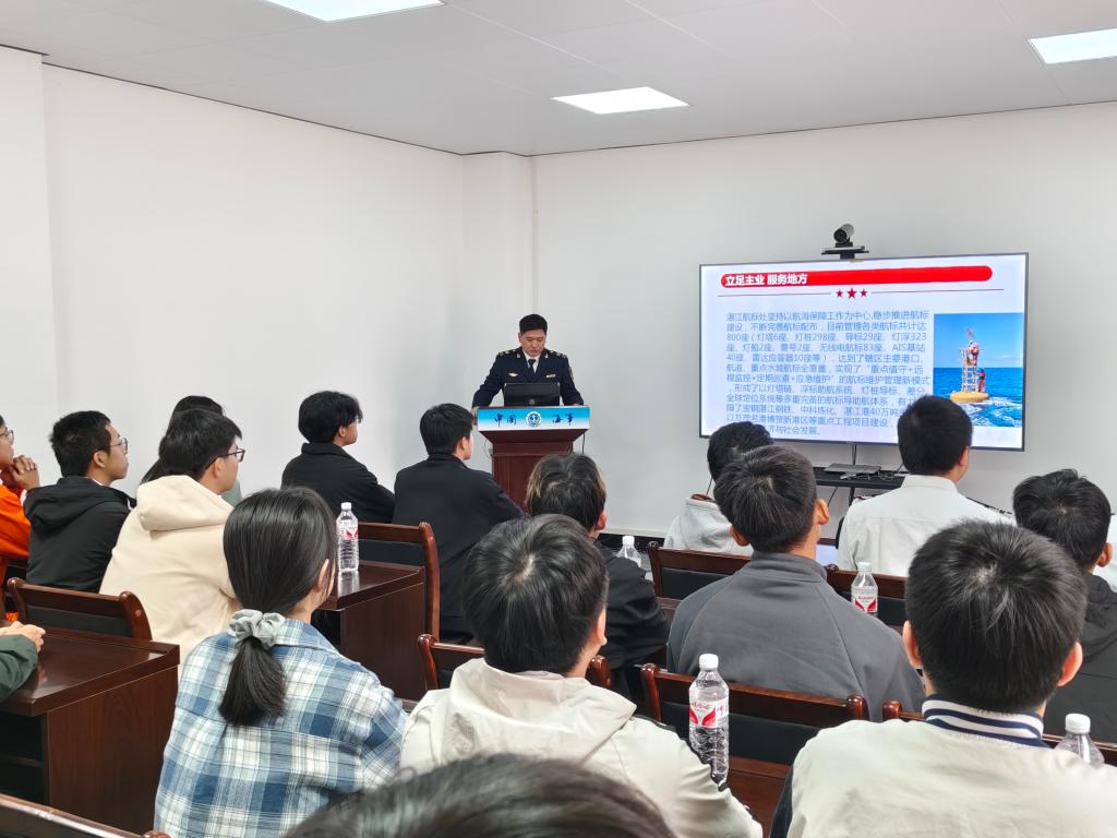 为凝聚校内外育人合力,加强公司与员工的互联互动,拓宽员工视野,12月19日上午,船舶与海运公司党委书记邓朝晖,正处级辅导员、党委副书记齐昊,半军管副大队长吴捍泽,辅导员郑祯远、陈方园带领员工代表30余人一同前往交通运输部南海航海保障中心湛江航标处开展“船海有我一我与员工面对面”活动。湛江航标处党委书记麦亚富,副处长陈家齐,航标养护中心主任陈宇红,船舶管理中心主任梁勇明以及员工田亮、龙达聪等参加活动。