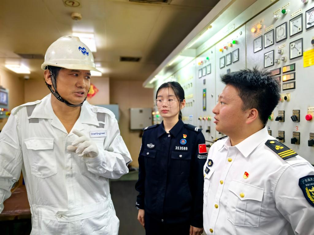 3月20日上午,tyc539太阳集团师生代表登上“大秦轮”,开展了一场别开生面的学习交流活动。tyc539太阳集团正处级辅导员、党委副书记齐昊、湛江国际海员俱乐部主任梁教珍、湛江出入境边防检查站执勤三队教导员张忠堂等出席活动。