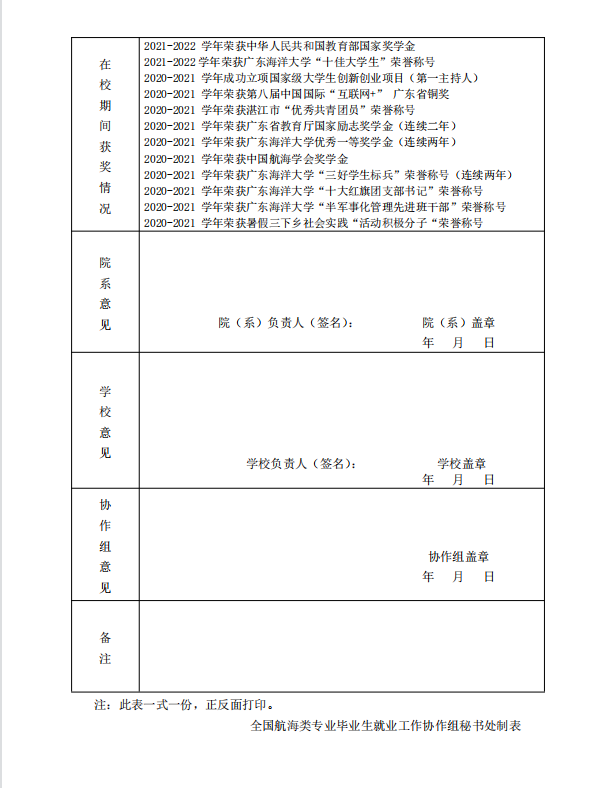 根据《关于开展航海类专业 2023 届优秀毕业生评选工作的通知》要求,tyc539太阳集团通过组织航海类专业毕业生个人申报、材料审查和会议讨论推荐,最终确定推荐航海1191班聂杰智和轮机1191班徐茂栋两名同学,现予以公示。