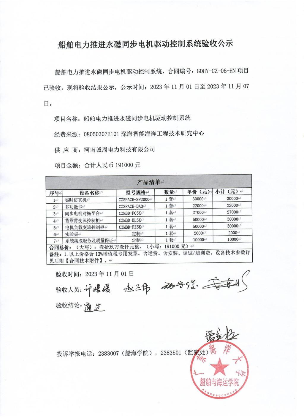 船舶电力推进永磁同步电机驱动控制系统验收公示