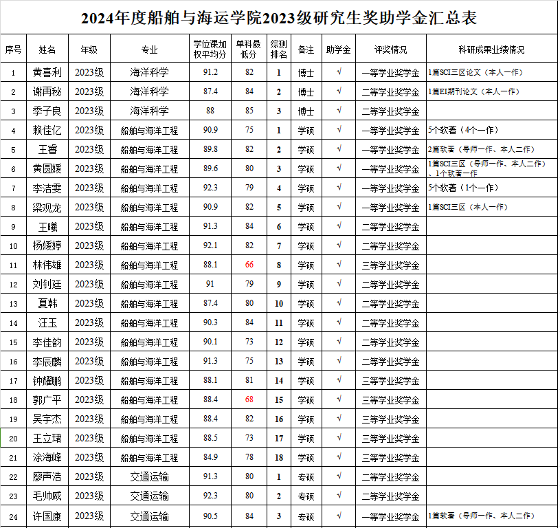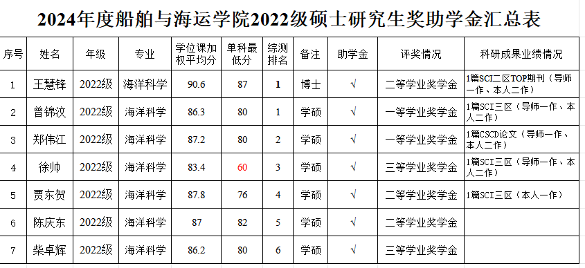 根据《广东省教育厅关于做好2024年秋季学期员工资助工作的通知》及《公司关于开展2024年研究生国家奖学金、学业奖学金和助学金评审工作的通知》精神,按照《tyc539太阳集团全日制研究生奖助学金实施办法》,经个人申请、公司评审小组认真审核及严格评选,拟确定获得研究生助学金、学业奖学金人员名单。其中,2021级海洋科学专业皮桂源同学因休学补发半年助学金,其余硕士研究生均不分等级全部获得助学金。现将评审名单进行公示(详见附表)。