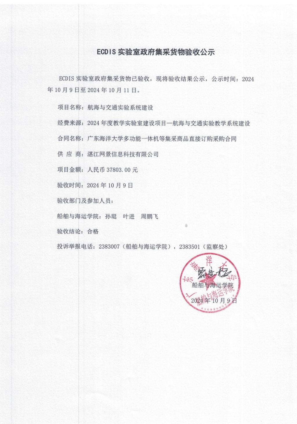 ECDIS实验室政府集采货物验收公示