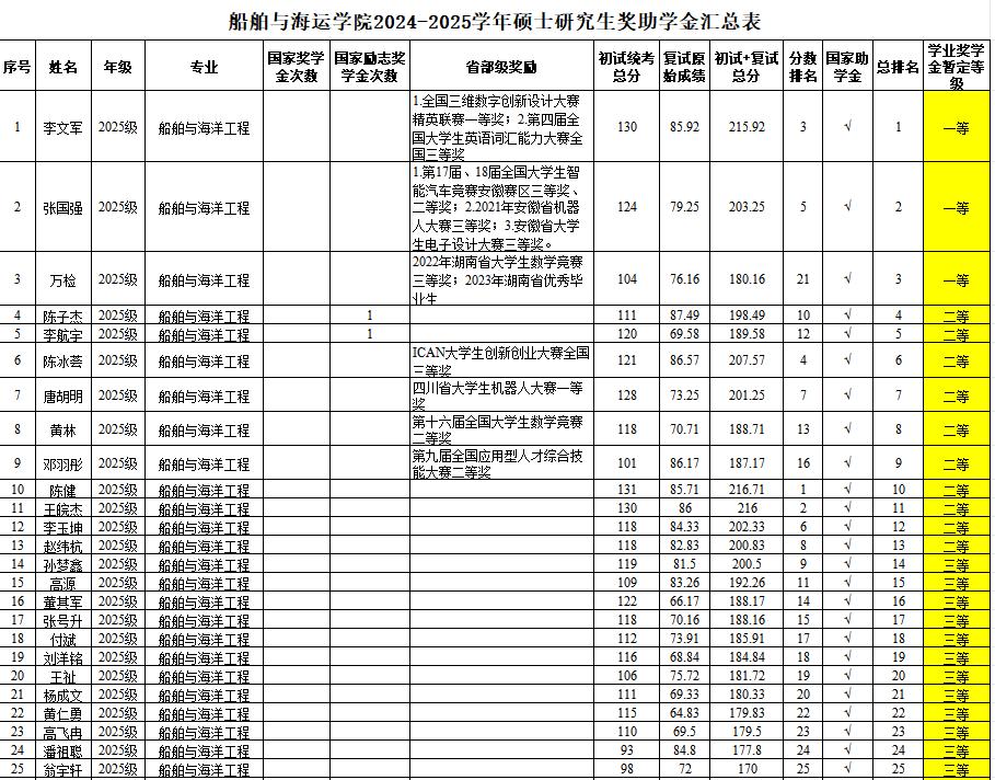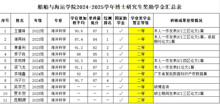 根据《广东省教育厅关于做好2025年秋季学期员工资助工作的通知》及《关于做好2025学年全日制研究生素质综合测评及奖助学金评审工作的通知》(校员工〔2025〕37号)的要求,按照《tyc539太阳集团全日制研究生奖助学金实施办法》(校研究生〔2021〕34号)执行,经个人申请、班级复审、公司评审小组认真审核及严格评选,拟确定获得研究生助学金、学业奖学金人员名单。其中,2023级交通运输专业吴浪涛同学因休学,其奖助学金待复学后予以补发。现将评审结果进行公示(详见附表)。