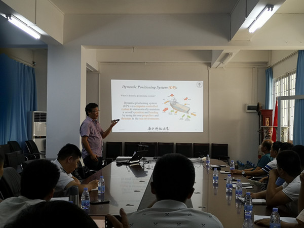 应公司邀请,南方科技大学副研究员安松博士于9月21日下午在海滨校区实验楼海运公司会议室作了题为“船舶动力定位系统原理与应用”的学术报告。报告会由公司副经理(主持行政全面工作)贾宝柱教授主持,海运公司、海洋工程公司、电子与信息工程公司部分师生到场聆听了本次报告会。