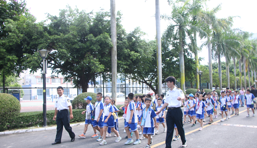 迎着初升的朝阳,同学们在基地志愿者的带领下列队完毕,迈着整齐的步伐进入科普教育基地参观。