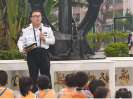 船模室如同藏满惊喜的博物馆,古典帆船、集装箱船、破冰船、消防船等各式船模整齐陈列,细节满满。志愿者用手电筒照亮船模,逐一讲解:“破冰船的船头像刀子,能切开冰层;消防船有大水枪,专救着火的船。” 孩子们踮脚趴在展柜前,小手指着船身线条,追问船的载客量、航行速度,完全沉浸在这个奇妙的航海微世界里,久久不愿离去。